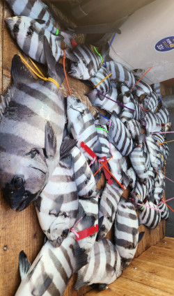 안녕하세요고흥 피쉬헌터호입니다오늘은 오랜만에 바다가 길을 열어줘 돌돔 덜덜이 출조를 다녀왔습니다계속 이어진 북서풍의 영향 때문인지 수온이 눈에 띄게 떨어져 있었고 그 여파인지 돌돔 입질도 상당히 까다로운 모습이었습니다시원하게 가져가는 입질보다는 톡톡 건드리는 예민한 반응이 대부분이었습니다하지만 그런 상황 속에서도 집중력을 놓지 않고 예신을 끝까지 밀어붙여 본신으로 연결해 올리신 분도 계셨습니다강한 입질을 받아 챔질 후 릴링 도중 목줄이 터져버리는 경우도 있었습니다다행히 목줄을 버텨낸 한 마리가 48cm 돌돔으로 올라와 얼굴을 보여주었습니다쉽지 않은 조건 속에서도 끝까지 낚시에 집중해주신 조사님들 모두 고생 많으셨습니다내